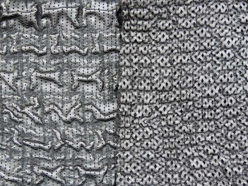 La foratura può essere composta con altri tipi di lavorazione, per ottenere effetti particolari e unici. Ad esempio, l'azienda può forare pelli di montone, nappa o scamosciate e accoppiarle o trapuntarle poi con gli esclusivi tessuti laminati realizzati sempre da E.B. Termoadesivi. In questo modo è possibile creare infiniti articoli, mettendo alla prova la fantasia, la passione, la creatività e il know-how dell'azienda.