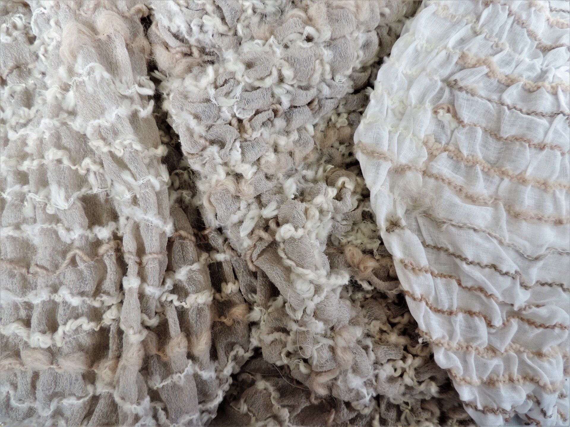 L'utilizzo di materiali all'avanguardia permette di produrre trapuntature particolari e originali, con disegni innovativi: l'evoluzione di questa tecnica, infatti, consente di creare tessuti unici, creativi e ricercati. Con questa lavorazione è possibile creare il macramè: grazie all'ausilio di supporti idrosolubili, E.B. Termoadesivi crea a ricamo filati di lana, tessuto o fettucce di pelle (lapin o montone), che poi vengono lavati. Il supporto si scioglie, scomparendo e lasciando soltanto i filati o fettucce intrecciati e legati tra loro. In questo modo si ottengono tessuti alti 150 cm, sciarpe e pannelli.